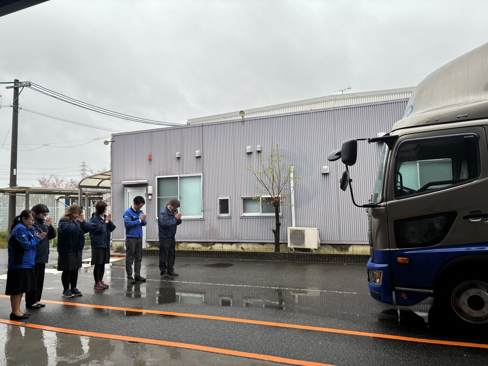 【愛知営業所】4tトラック納車 2026/03/31 本日、ナルキュウ中部の愛知営業所に新たに4tトラックが1台納車され、納車式を行いました。 今日は朝からあいにくの雨でしたが、納車式を行う時間には小雨になり無事執り行うことができました。 今回のトラックは新しいデザインを採用しています。 評判が良かったら今後もこのデザインを採用していく予定です。 新しいトラックとともに、これからもお客様の大切なお荷物を丁寧・確実にお届けしてまいります。 今後ともどうぞよろしくお願いいたします!